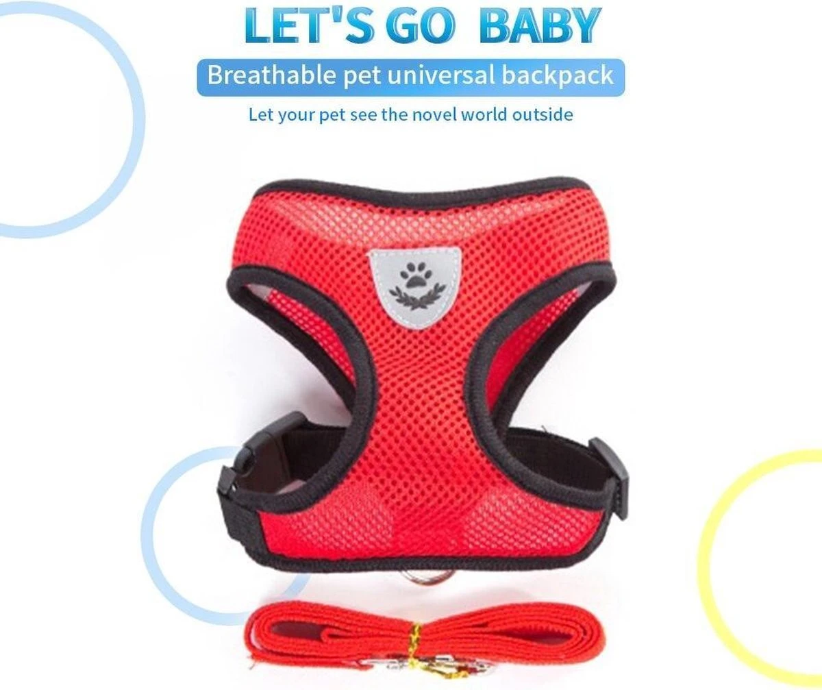 Hondentuig- Hondentuigjes Kleine Hond-hondentuigjes Puppy-Kattenspeeltjes-kat-dog-Kattenharnas-kattentuigje -kattentuigje Met Looplijn-maat M-Rood