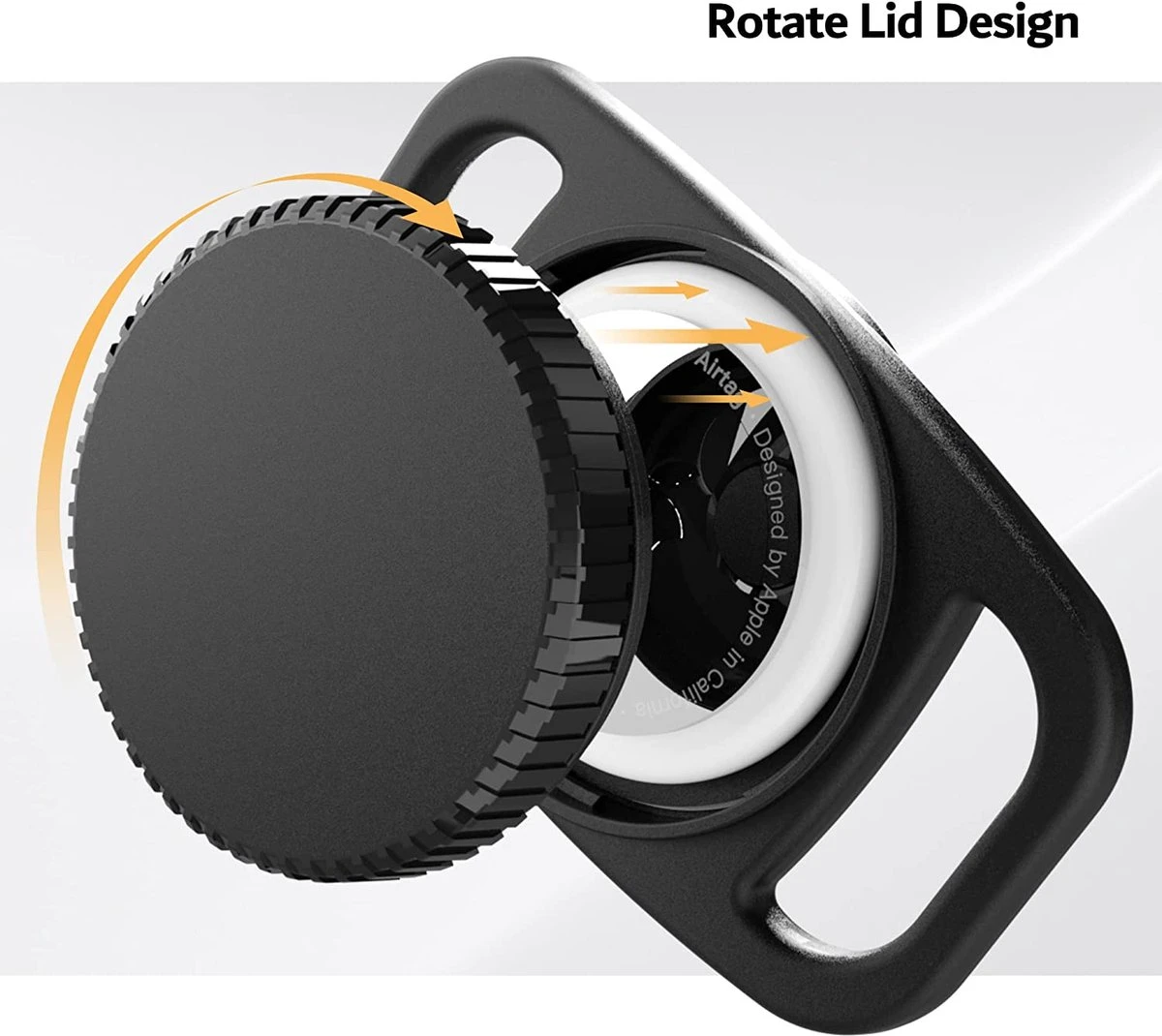 - ROTATE DEKSEL DESIGN: deze Airtag halsbandhouder heeft een roterend dekselontwerp om gemakkelijk te gebruiken onder de katten- en hondenhalsband. Ook is het eenvoudiger om AirTag te installeren en te verwijderen. OPMERKING: OM VALGEVALLEN TE VOORKOMEN, MOET U HET BOVENSTE DEKSEL STEVIG SCHROEVEN.
