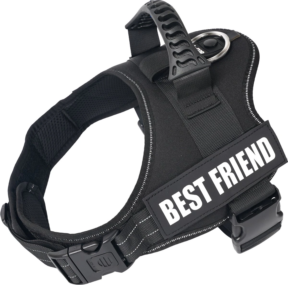 Het hondentuig van Woofy is voorzien van een stevige ronde haak, dit zorgt voor alle bewegingsvrijheid die jouw hond nodig heeft. In tegenstelling tot andere hondentuigjes is hij ook voorzien van een handvat, waardoor je jouw hond kort kunt houden als dit nodig is. Het hondentuig is gemaakt van kwalitatief ademend en comfortabel materiaal. Doordat dit sneldrogend materiaal is, is het geen probleem dat je hond het water in gaat met het hondentuigje om.