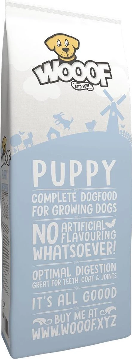 WOOOF puppy is natuurlijk geperst puppyvoer voor puppy’s. WOOOF puppy is een geweldige geperste puppybrok voor jouw opgroeiende hond tot ± 12 maanden. Na ± 12 maanden kun je probleemloos overstappen op één van onze andere smakelijke WOOOF varianten.